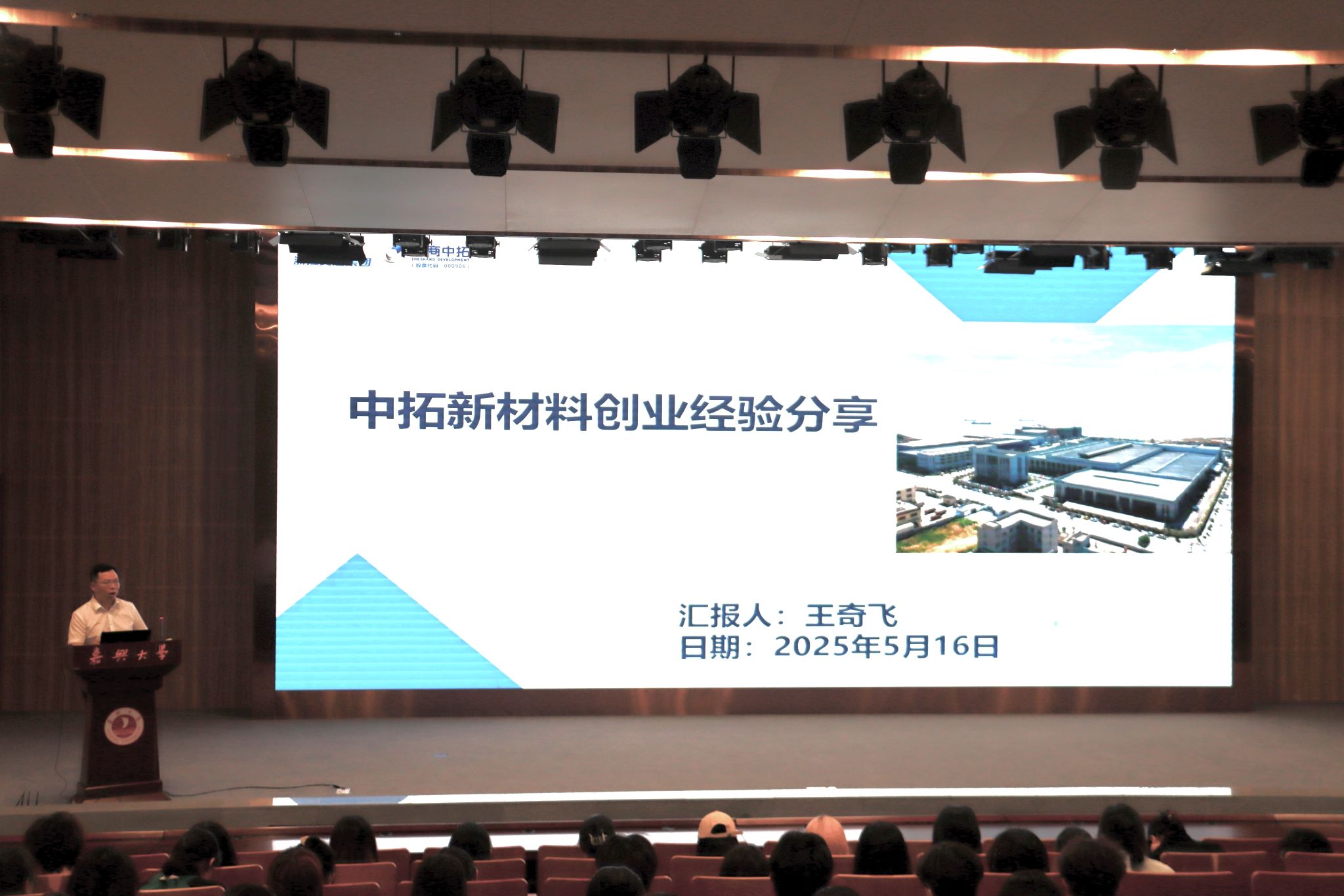 2025 年 5 月 16 日 ,由省身学院、创新创业学院主办、必赢线路检测中心承办的“育成讲堂第58讲”在梁林校区图书馆学术报告厅举行。浙商中拓集团(浙江)新材料科技有限公司总经理、海盐县工商联(总商会)执委王奇飞受邀担任主讲嘉宾,讲座由必赢线路检测中心党委副书记陈晶晶主持,共计300余名同学参加。