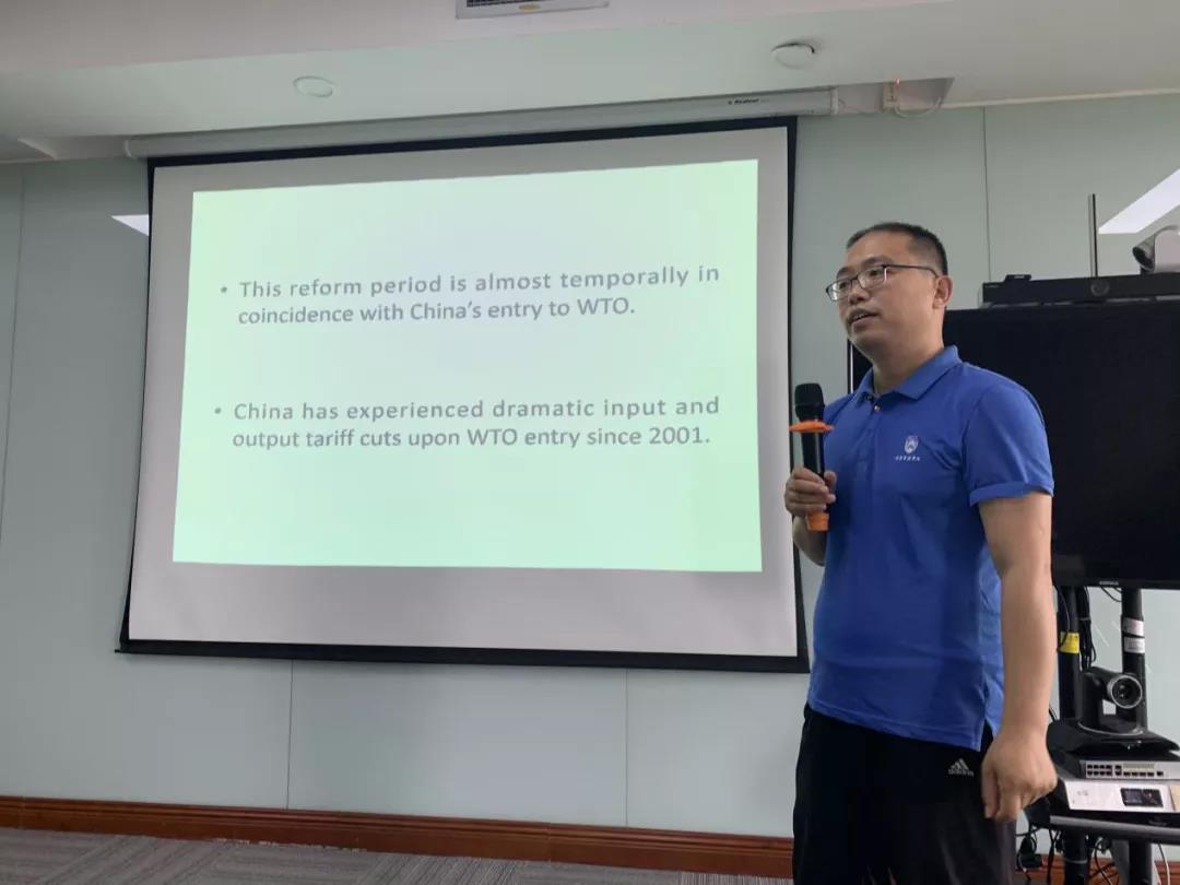 林发勤教授的报告主题为《Trade Liberalization and the Decentralization of State-Owned Enterprises: Evidence from China》。林教授从选题动因、文献综述、典型事实、理论模型构建、数据清洗、统计分析、实证策略、计量模型、研究结论等全过程对文章进行了拆解分析,研究发现,中国2001年加入WTO后的关税降低对国有企业改革产生了重要影响,存在显著的因果效应。
