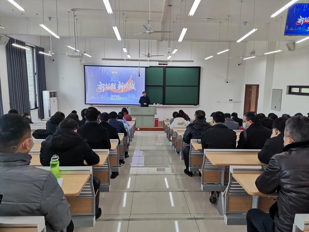 院长文雁兵简单回顾了去年学院工作,从高质量发展思路、2022年重点工作及工作举措三个方面介绍了学院2022年工作计划,并对相关工作进行了布置。他希望学院全体教职工统一思想、统一步调,各专业对标学习,发挥特色优势,全员奉献,有责任有担当,完成学院2022年新征程,实现学院跨越式发展。随后,学院党政领导班子成员结合分管工作提出本学期工作的思路和计划,对开学初工作进行了布置落实。