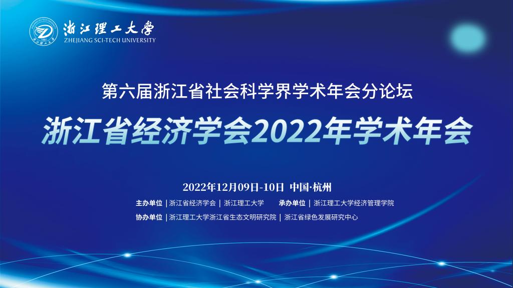 2022年12月10日,第六届浙江省社会科学界学术年会分论坛——浙江省经济学会2022年学术年会在浙江理工大学召开。本次年会由浙江省社会科学界联合会指导,浙江省经济学会、浙江理工大学主办,浙江理工大学经济管理学院承办,浙江省哲学社会科学重点研究基地—浙江理工大学浙江省生态文明研究院、浙江省高校新型智库—浙江省绿色发展研究中心协办。来自杭州、宁波、温州、金华、嘉兴、衢州等多地高校专家学者线上线下联动参会,以“高质量发展与共同富裕:理论创新与浙江实践”为主题,学习探讨最新研究成果,共同推进浙江高质量发展建设共同富裕示范区深入探索。