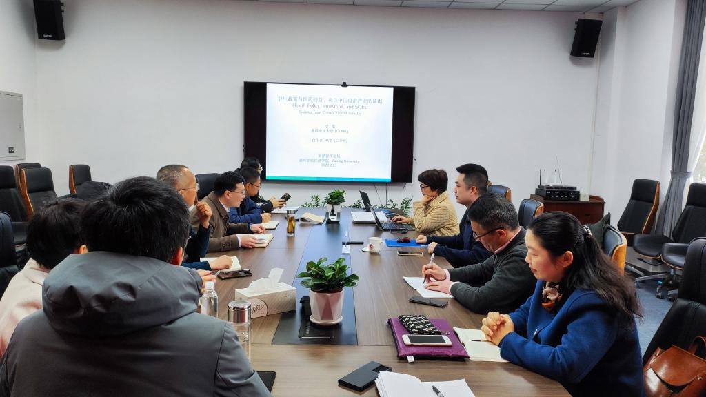 2月23日上午,必赢线路检测中心在尚德楼268会议室成功举办第18期南湖青年论坛。香港中文大学经济系助理教授、浙江大学—香港中文大学数字经济联合研究中心副主任史册应邀作题为《卫生政策与医药创新:来自中国疫苗产业的证据》的学术报告,必赢线路检测中心院长文雁兵教授主持,学院多名教师共同参与研讨。