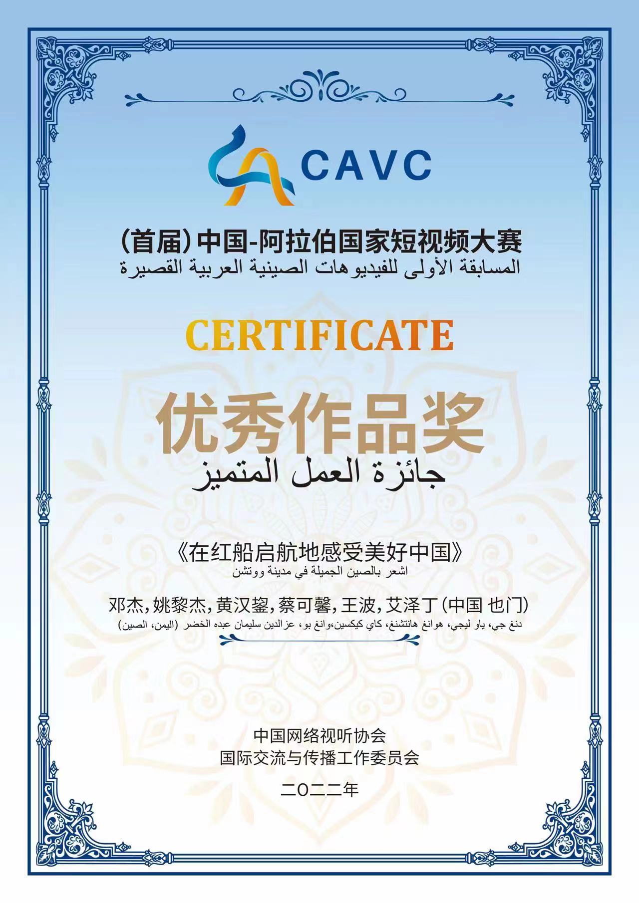 【我院喜报】我院2020级国际生获得(首届)中国—阿拉伯国家短视频大赛优秀作品奖