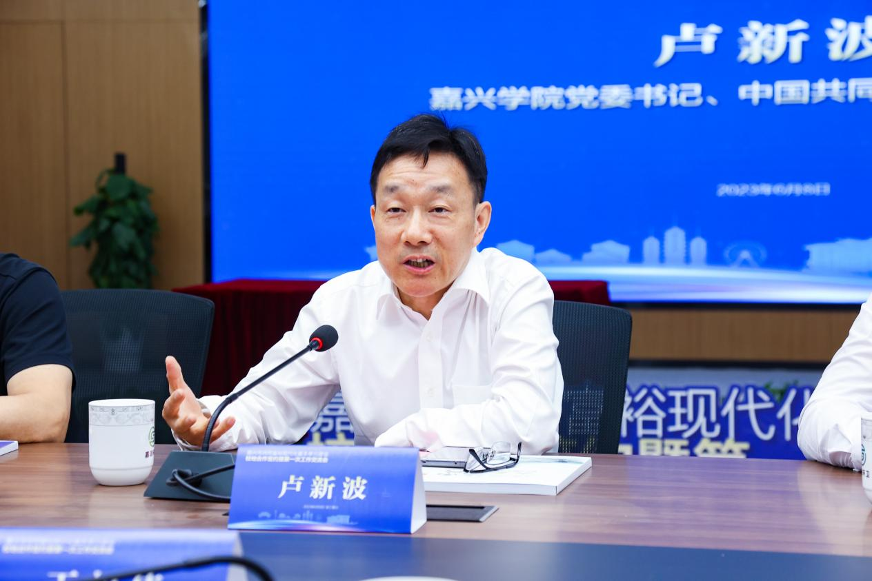 卢新波介绍了学校建设一流应用型综合性大学的近期目标、主要思路和重要举措。他强调,嘉兴全市推进共同富裕现代化基本单元建设,既是深入贯彻落实习近平总书记关于共同富裕和城乡规划建设重要论述精神的生动实践,又是高质量发展建设共同富裕示范区典范城市和提升市域现代化水平从宏观谋划到微观落地的变革抓手,更是全面打造长三角城市群重要中心城市、更好满足嘉兴人民对美好生活向往的民生工程,期待此次校地合作,共同将嘉兴城乡发展的优秀实践成果进行经验总结和理论升华,转变为科学化的制度设计和形成引领性的政策体系。
