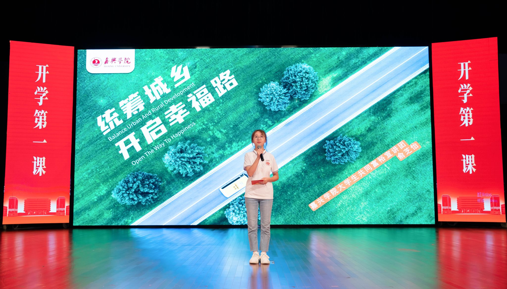 我校大学生共同富裕宣讲团宣讲员经济221俞芝怡进行《统筹城乡开启幸福路》主题宣讲,2022年“中国大学生自强之星”奖学金获得者金融201王蓉进行《一份热 一份光 一段新旅程》主题宣讲。