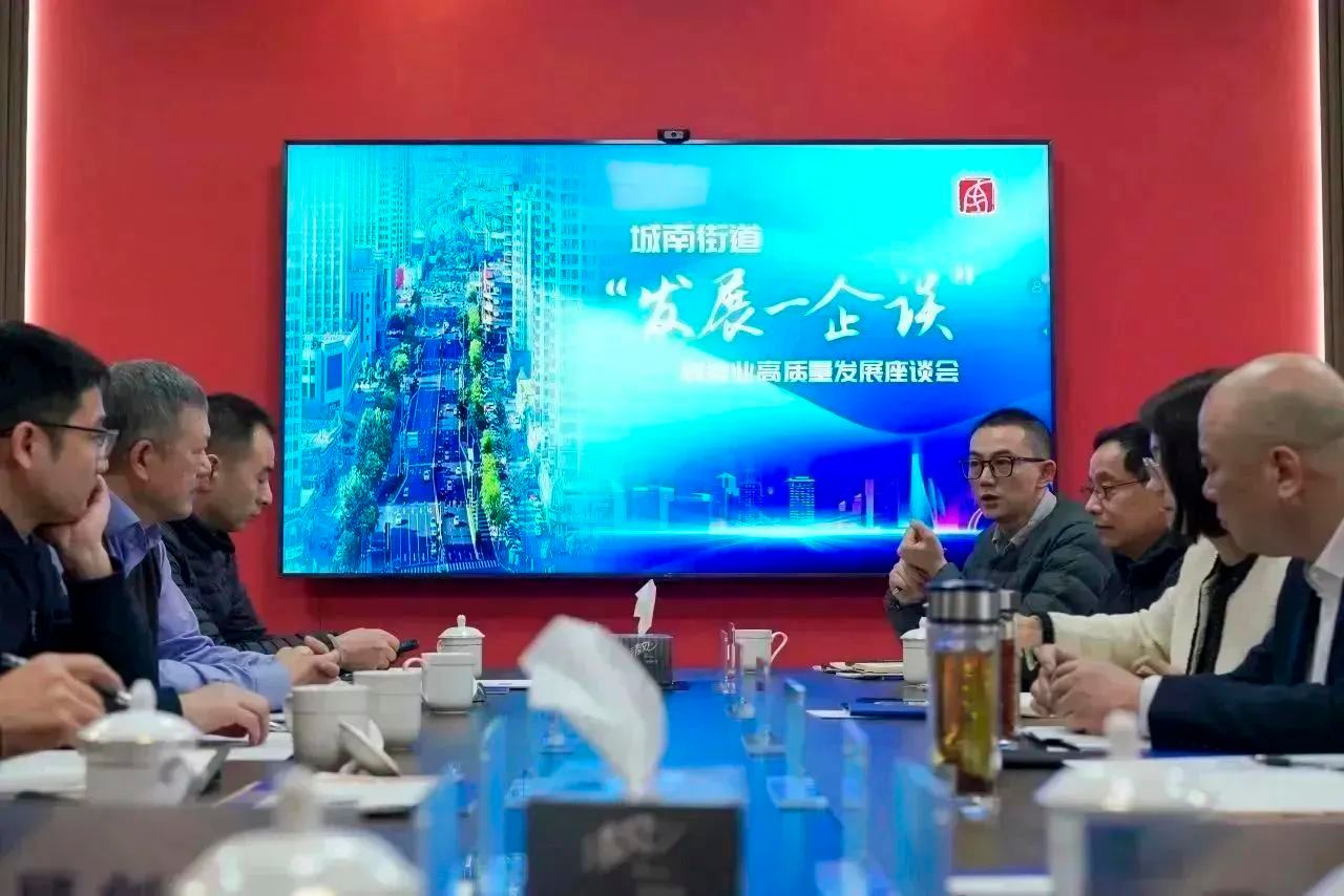 在全国上下学习贯彻落实中央经济工作会议精神之际,为促进城南街道辖区企业高质量发展,为企业排忧解难,提供精准服务,12月15日上午,嘉兴市城南街道在我院举办“发展一企谈”首场主题活动:制造业高质量发展座谈会。
