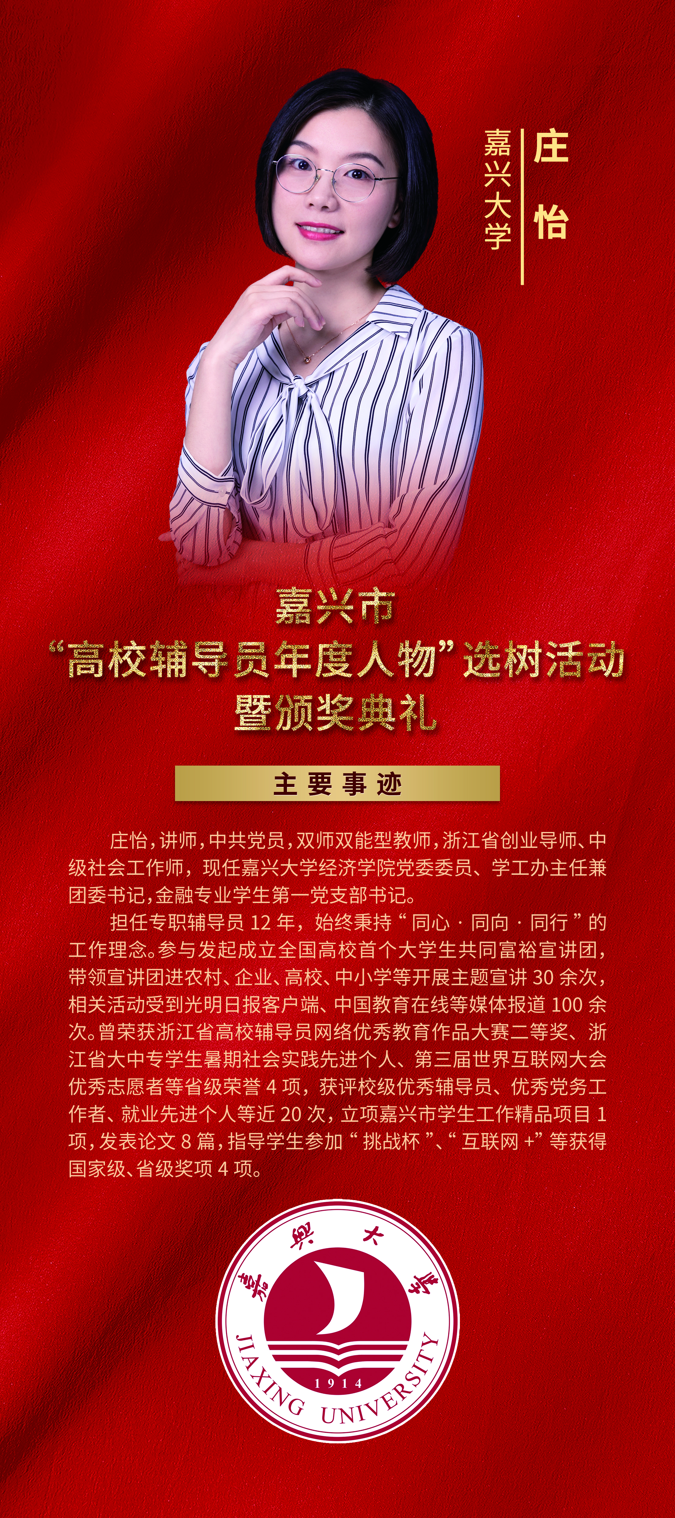 【我院喜报】我院辅导员庄怡荣获2023年嘉兴市“高校辅导员年度人物”称号