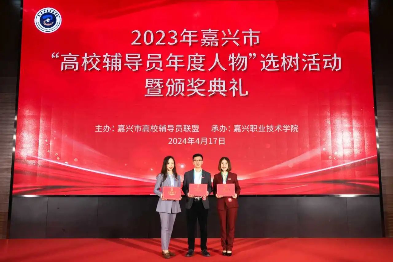 4月17日,2023年嘉兴市“高校辅导员年度人物”选树活动暨颁奖典礼在嘉兴职业技术学院举行。本次评选活动由嘉兴市高校辅导员联盟举办,旨在全面实施“时代新人铸魂工程”,大力培育选树新时代嘉兴市高校辅导员先进榜样,展示我市高校辅导员队伍专业化职业化建设成效。