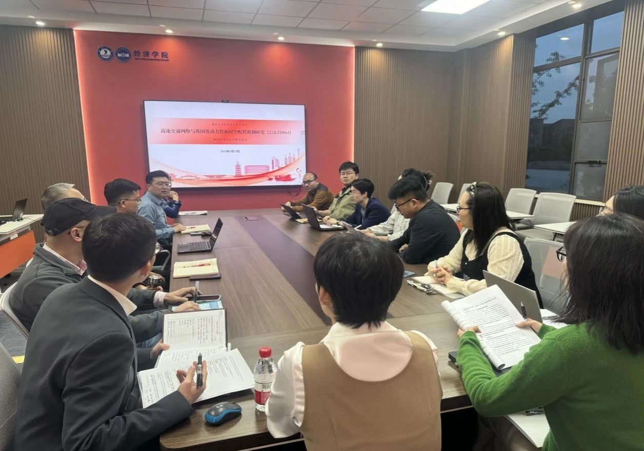4月25日,文雁兵教授主持召开国家社会科学基金重大项目“高速交通网络与我国劳动力资源时空配置机制研究”2024年第2次专题讨论会,深入研习新质生产力概念内涵,重点讨论本项目研究如何有效衔接新质生产力发展要求,并就关键指标的测度框架和数据获取方式展开研讨,来自浙江工商大学、宁波大学、北京科技大学、嘉兴大学等单位20余位课题组成员参加会议。