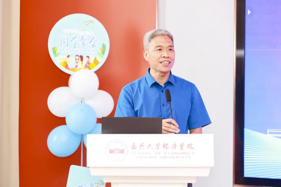 文雁兵院长代表学院对2004届本科毕业生的来校聚会表示热烈欢迎,对校友们一直以来关心、关注并支持学校、学院的发展表示衷心感谢。他表示,学院百年文脉、薪火相传,110年来始终坚持与国同向、与校同行,积极适应国家战略所需与学校应用型办学定位,科学优化专业布局,同时依托中国共同富裕研究院、长三角一体化发展研究中心、嘉兴市地方金融发展研究院等科研平台,近年来科研成果丰硕;学院坚持红船领航、铸魂育人,通过党建引领、思政育人、学科驱动、社会服务、五育并举的五色育人机制打造五彩经济嘉人,近年来学生荣获“中国大学生自强之星”、“挑战杯”全国大学生课外学术科技作品竞赛国家二等奖、三等奖等一系列育人成果。他强调,学院取得的一系列成果离不开老一辈经济人打下的坚实基础、离不开新一代经济人的接续奋斗、更离不开广大校友的关心支持。校友与母校是终身命运共同体,双向奔赴、相互推动,校友好,母校就好,母校好,校友的发展才会更好。
