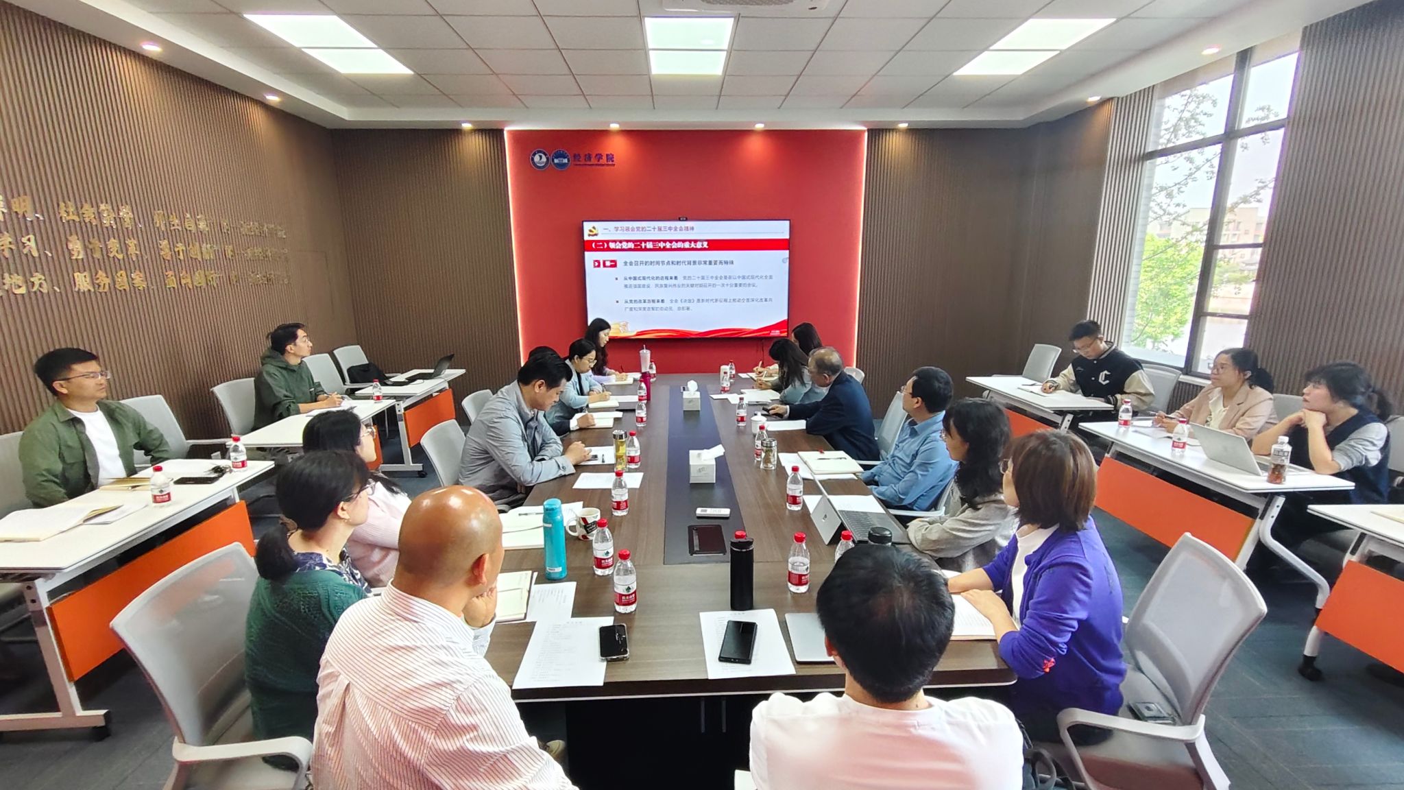 10月10日上午,校党委副书记钱方明教授来院作党的二十届三中全会精神专题宣讲。宣讲会由学院党委书记蔡运男主持,学院党委班子成员、支部书记、系主任及教师代表参加学习。