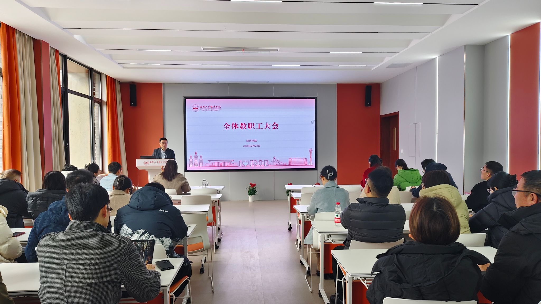 会议首先学习传达了学校2025年工作部署会议精神。院长文雁兵强调,2025年,是“十四五”规划收官、“十五五”规划谋定推进并提前启动实施之年,更是学院在学校高质量发展大背景下,锚定新发展目标,坚持干字当头,跑出“嘉”速度的跨越之年。他要求,一要紧跟形势,横纵比较,学会“看”。全体教师要深入学习贯彻落实《教育强国建设规划纲要(2024—2035年)》、省市“新春第一会”等精神,紧跟国家政策导向,积极适应教育强国、教育强省建设的总体要求,不断提升学院整体办学水平和核心竞争力。二要紧盯重点,善于研究,学会“干”。要汇聚集体智慧,打好人才引育攻坚战,通过对每位教师设计“画像”,做好“体检”,发挥出人才队伍的最大优势;要凝聚全院力量,打好学位点建设攻坚战,通过平台赋能,对标对表,培育出新一轮硕士培育点最佳条件。三要乘势而上,主动出击,学会“谋”。继续深入推进“新我院战略”综合改革,全院上下要进一步解放思想,积极借助外部力量,争取更多资源,通过科学制定“一系一表”,指标任务落实落细,力争在2025年实现高质量发展任务新突破!