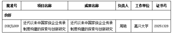 近日,我院周艳副教授主持的国家社科基金一般项目“近代以来中国家族企业传承制度构建的探索与创新研究”顺利通过验收审批,鉴定等级为良好。