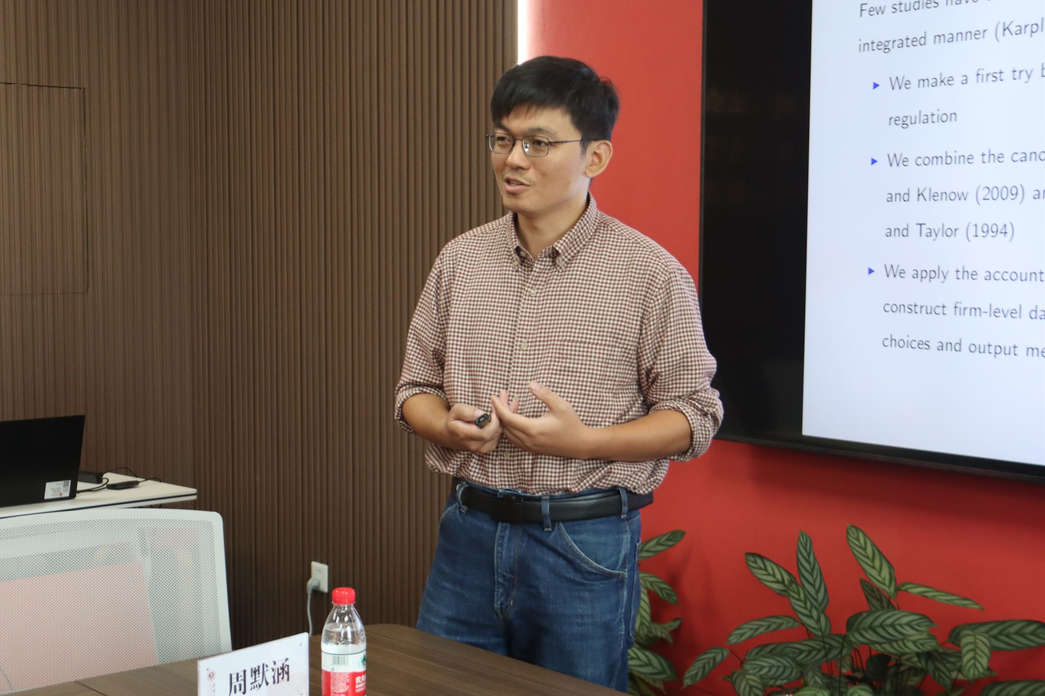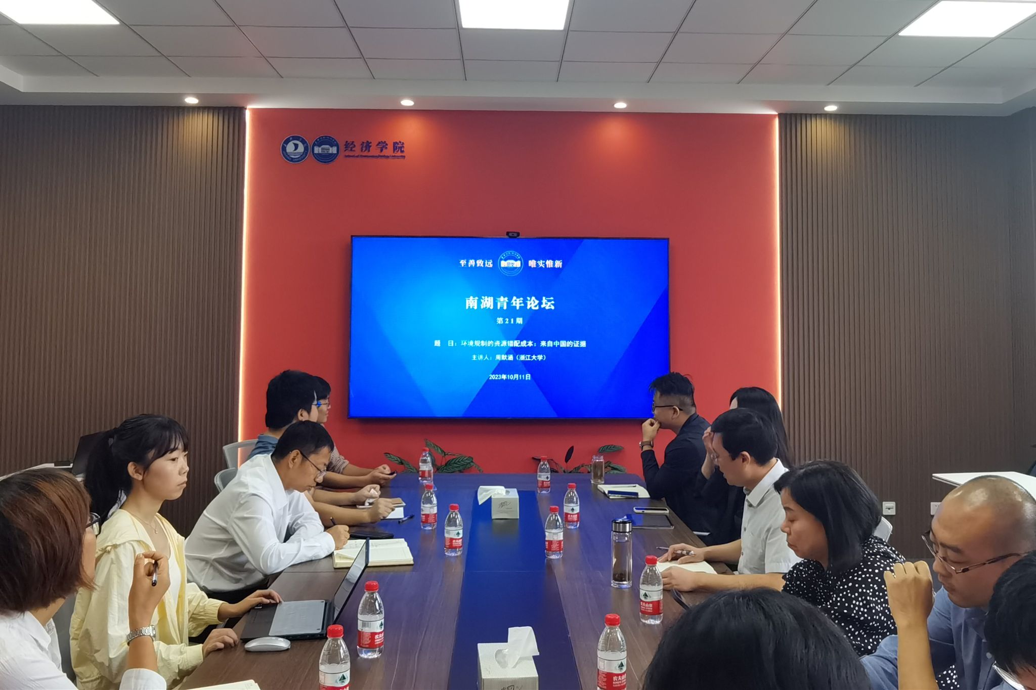 10月11日上午,必赢线路检测中心在尚德楼268会议室成功举办第21期南湖青年论坛。浙江大学百人计划周默涵研究员应邀作题为《The Misallocation Cost of Inefficient Environmental Regulation: Evidence from China》的学术报告,必赢线路检测中心院长文雁兵教授主持,学院多名教师共同参与研讨。