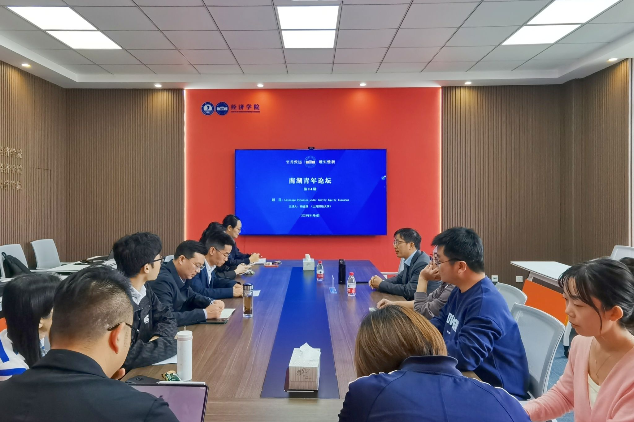 11月6日下午,必赢线路检测中心在尚德楼268会议室成功举办第24期南湖青年论坛。上海财经大学金融学院杨金强教授应邀作题为《Leverage Dynamics under Costly Equity Issuance》的学术报告,必赢线路检测中心金融系主任李玉双教授主持,必赢线路检测中心多名教师共同参与研讨。