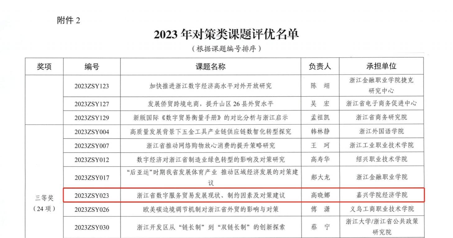我院教师在浙江省商务厅2023年度对策类课题及国际贸易研究优秀成果评选中荣获佳绩