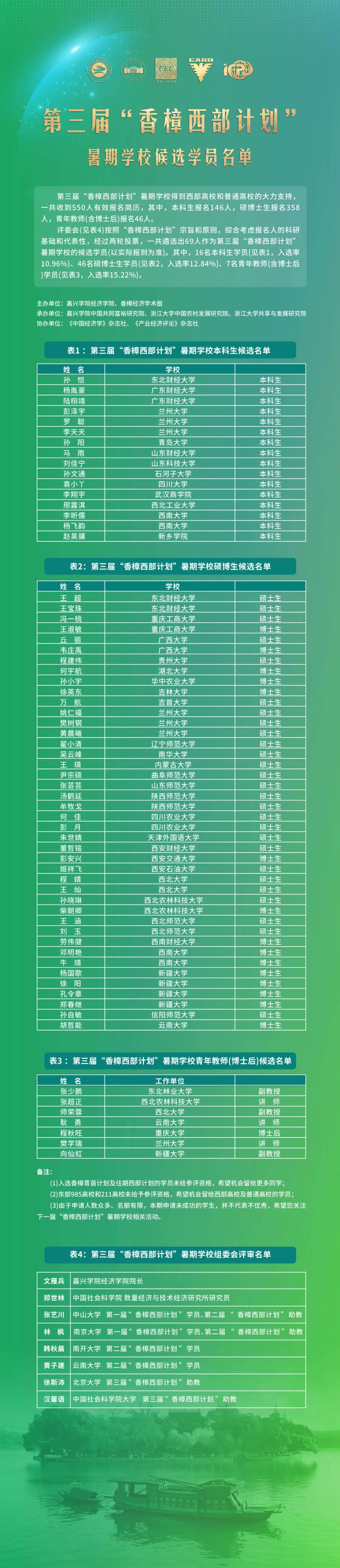 第三届“香樟西部计划”暑期学校候选学员名单