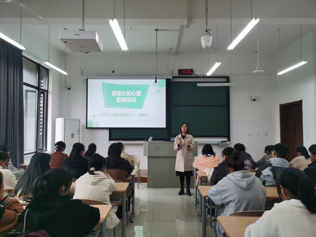 1118日下午,必赢线路检测中心举行21级寝室长心理健康知识培训,本次培训邀请到我校大学生心理健康中心姚春芬担任主讲,全体21级寝室长70余人参加。