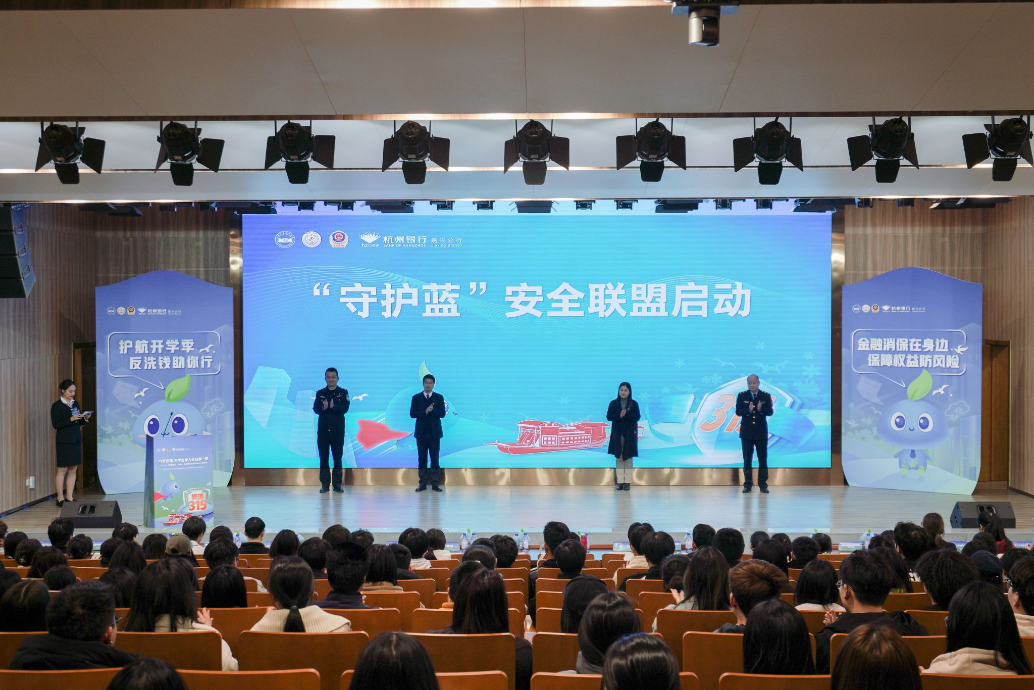 为持续提升大学生金融安全意识,有效构建高校安全防火墙,3月15日,我院联合嘉兴市公安局经开分局、嘉兴市市场监督管理局经开分局、杭州银行嘉兴分行共同举办“守护蓝”绘就校园“平安色”——315“高校安全行动”开课仪式暨“守护蓝”安全联盟启动仪式。