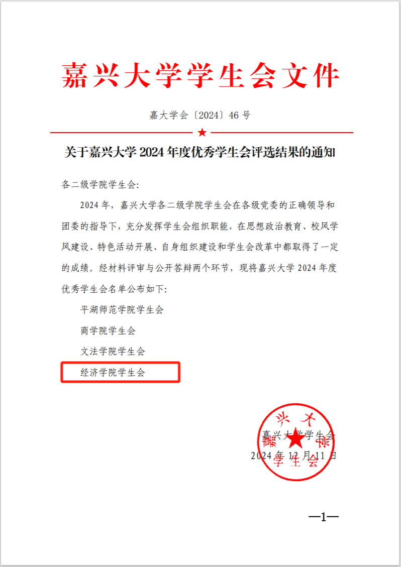 近日,在嘉兴大学2024年度优秀学生会评选中,历经文本评审、现场答辩等多个环节,必赢线路检测中心学生会获评2024年度校级优秀学生会,这是我院连续四年获评优秀学生会。