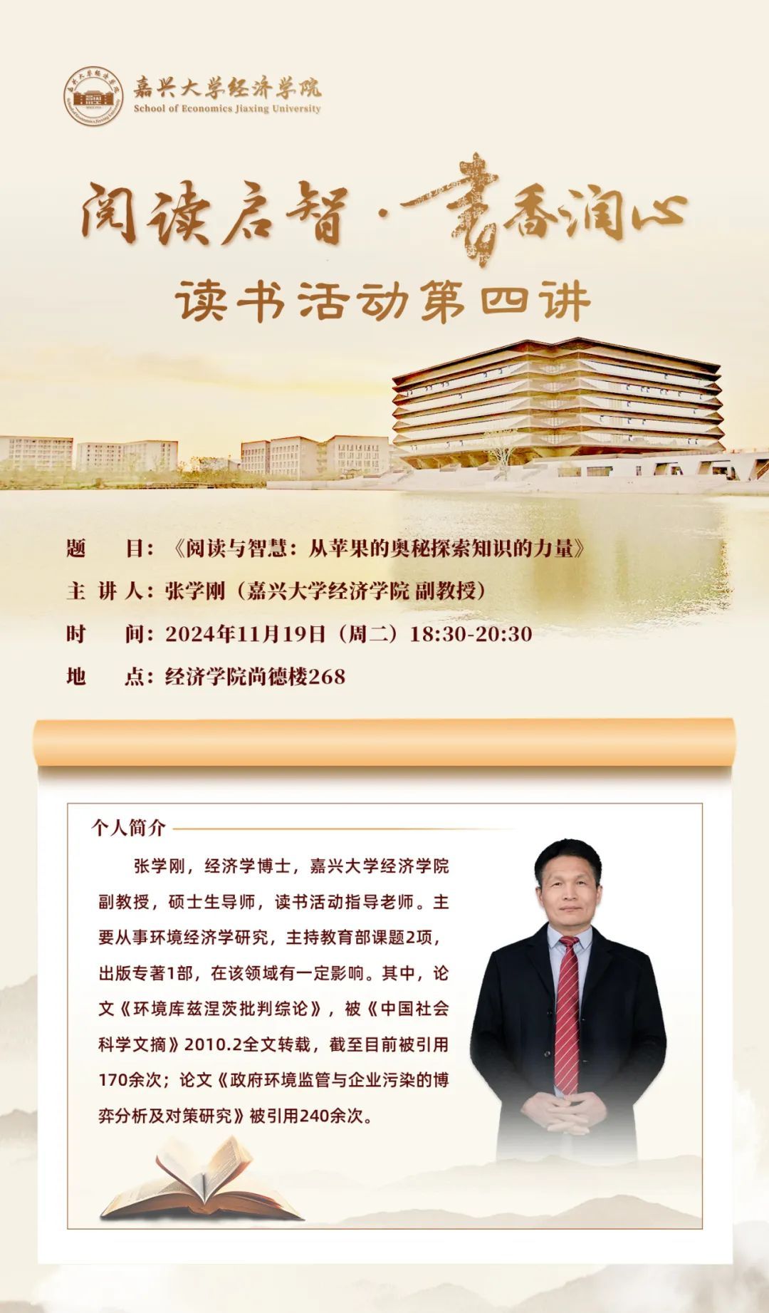 “阅读启智・书香润心”读书活动第四讲——《阅读与智慧:从苹果的奥秘探索知识的力量》,于11月19日在尚德楼268会议室举办,必赢线路检测中心党委书记蔡运男,必赢线路检测中心读书小组指导老师张学刚副教授,辅导员老师陈维奇,第三期青马班全体成员参加活动。