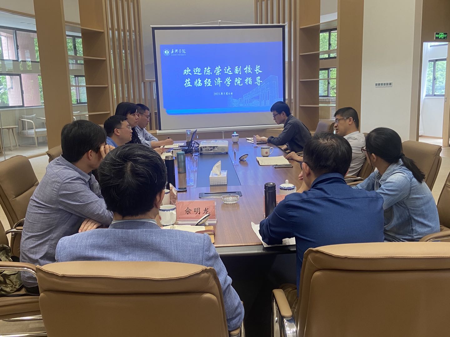 必赢线路检测中心院长文雁兵代表班子汇报必赢线路检测中心发展情况,重点汇报了学院师资、应用经济学学科建设、人才引进、科研团队、成果申报、硕士学位点培育情况,院党委书记施敏颖就学院党建和文化建设工作进行汇报,班子其他成员以及系主任们也就分管工作和系部工作做了补充汇报。