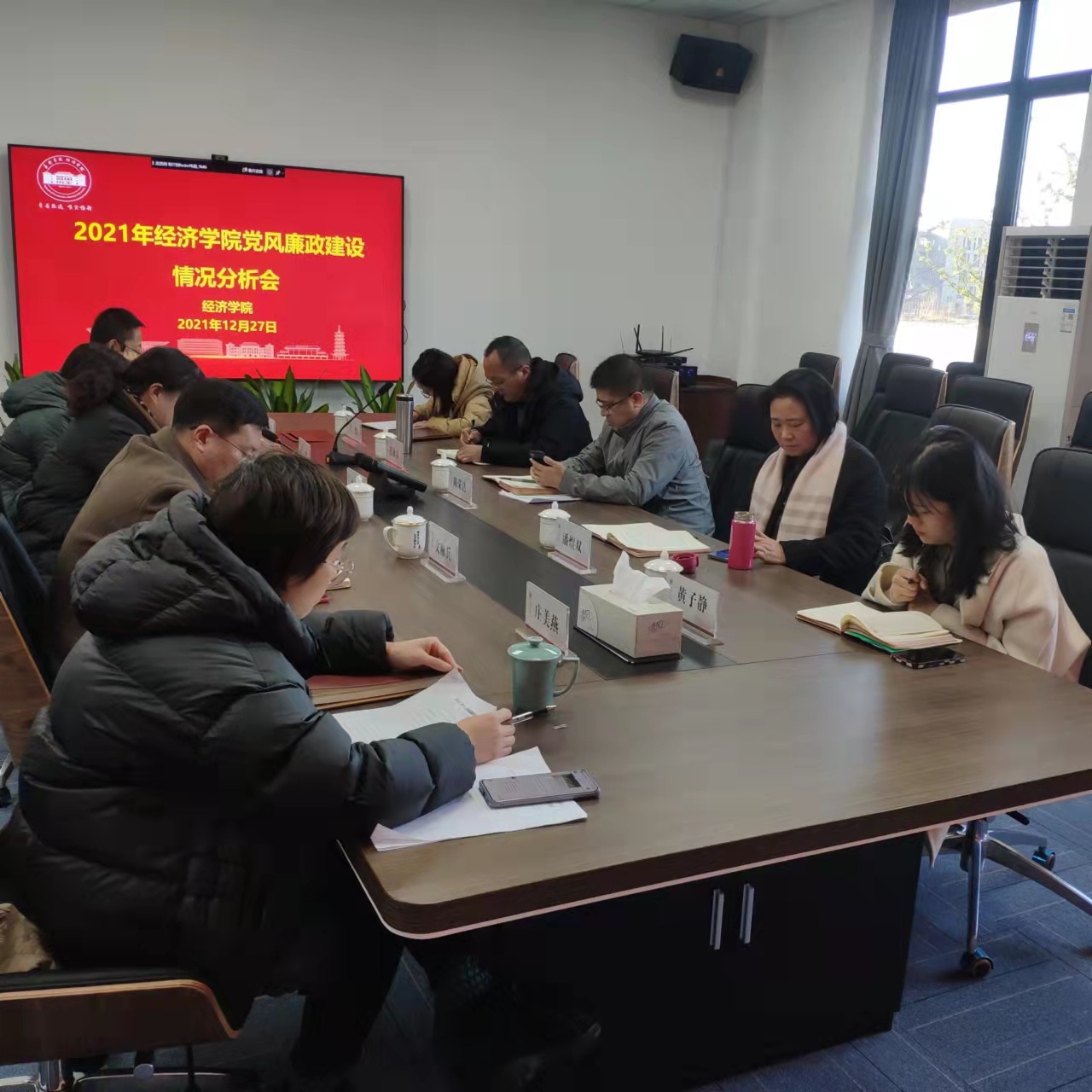 12月27日下午,必赢线路检测中心召开2021年党风廉政建设情况分析会。我校副校长陈荣达、校纪委委员商学院院长潘煜双应邀到会指导,学院党政领导班子成员、党委委员、特约监察员参加会议。会议由学院党委书记施敏颖主持。