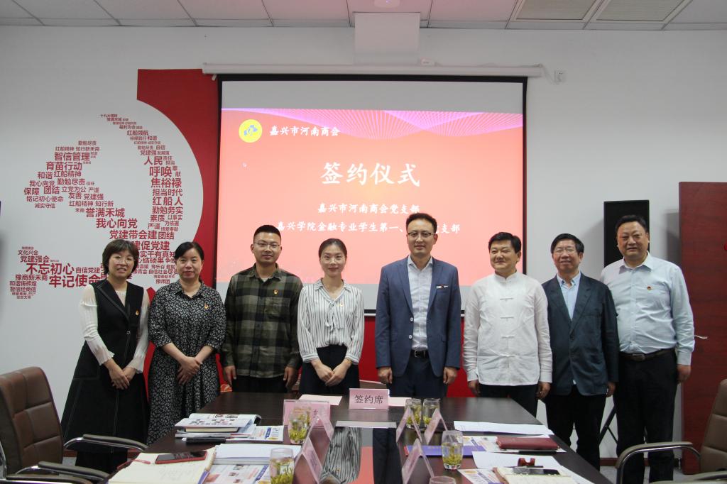 5月19日,我院金融专业学生第一、第二党支部与嘉兴市河南商会党支部举行结对签约仪式,共同打造“校会企”党建工作新模式。嘉兴市河南商会会长李永宪,商会副会长、党支部书记吕丹,必赢线路检测中心党委书记施敏颖,党委副书记庄美燕及双方代表出席签约仪式。仪式由商会党支部党务红领、秘书长刘高宪主持。