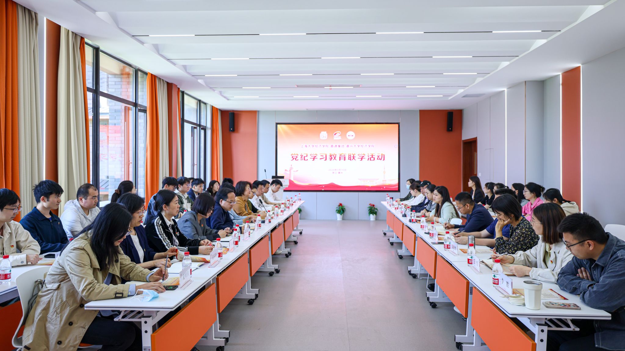为深入贯彻习近平总书记关于党纪学习教育的重要讲话和重要指示精神,认真学习领会《中国共产党纪律处分条例》(以下简称《条例》),教育引导广大党员学纪、知纪、明纪、守纪,5月16日,我院联合上海大学必赢线路检测中心、嘉通集团共同开展党纪学习教育,以“专题研学+实地走学”的形式,推进党纪学习教育走深走实。上海大学必赢线路检测中心党委副书记、常务副院长殷凤,党委副书记、副院长冯玉鑫,嘉通集团纪委副书记、纪检监察室主任高惠群,纪委委员、纪检监察室副主任孙清子,国鸿公交公司101路党支部书记邱征宇,必赢线路检测中心党委书记蔡运男,院长文雁兵,副院长孙庆刚,党委副书记、纪委书记陈晶晶及两校师生代表、集团青年员工代表30余人参加学习交流。