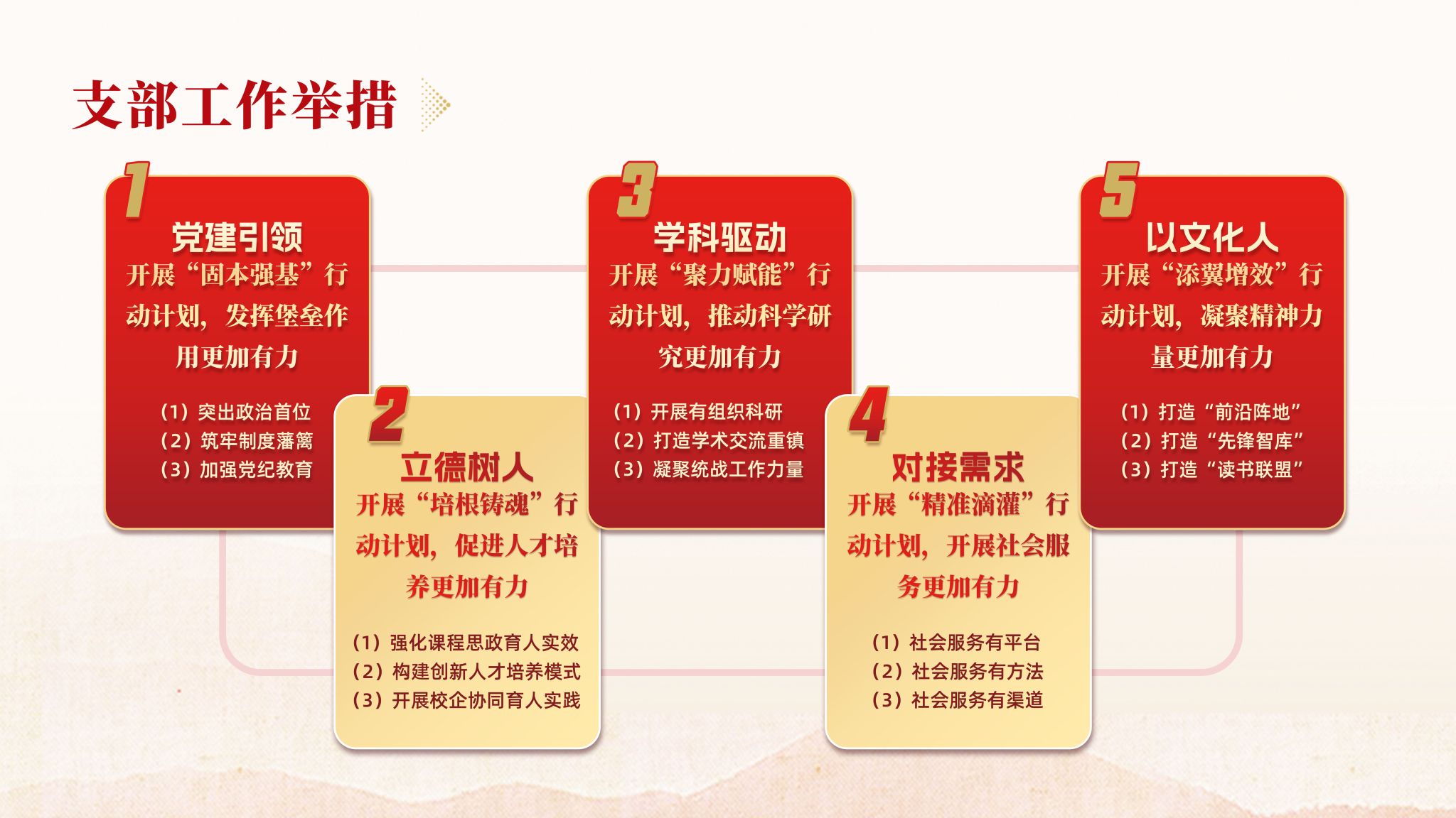 必赢线路检测中心坚持以党建统领工作全局,围绕建设“有特色、善创新的综合性高水平大学”使命愿景,将支部建在学科上,依托支部建强学科为龙头,通过不断提升党建与事业统合力、党建与业务协同力、协同育人聚合力、改革发展助推力、干事创业凝聚力,着力打造有厚度、有高度、有广度、有力度、有温度的“五度”党建新体系,以高质量党建引领学院高质量发展。