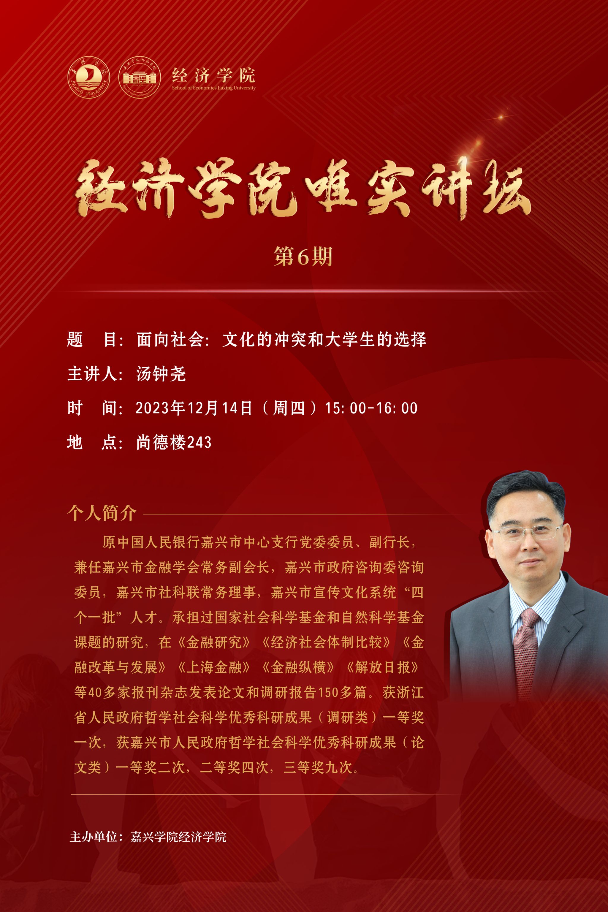 唯实讲坛NO.6:“面向社会:文化的冲突和大学生的选择”