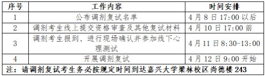 我院硕士研究生复试将采取现场复试方式进行,调剂复试安排初定如下,如有变更另行通知: