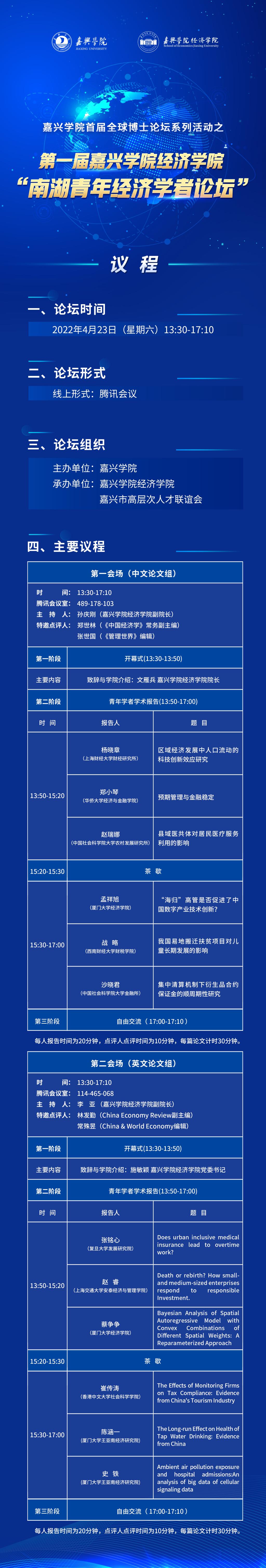 【会议通知】第一届必赢线路检测中心“南湖青年经济学者论坛”